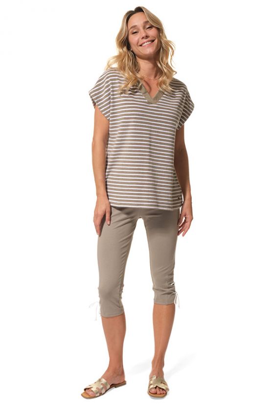 Le legging court ABBYGAEL se porte facilement avec une tunique, un tee-shirt long ou une marinière légère. C’est une pièce idéale pour composer une tenue d’été confortable, féminine et décontractée.