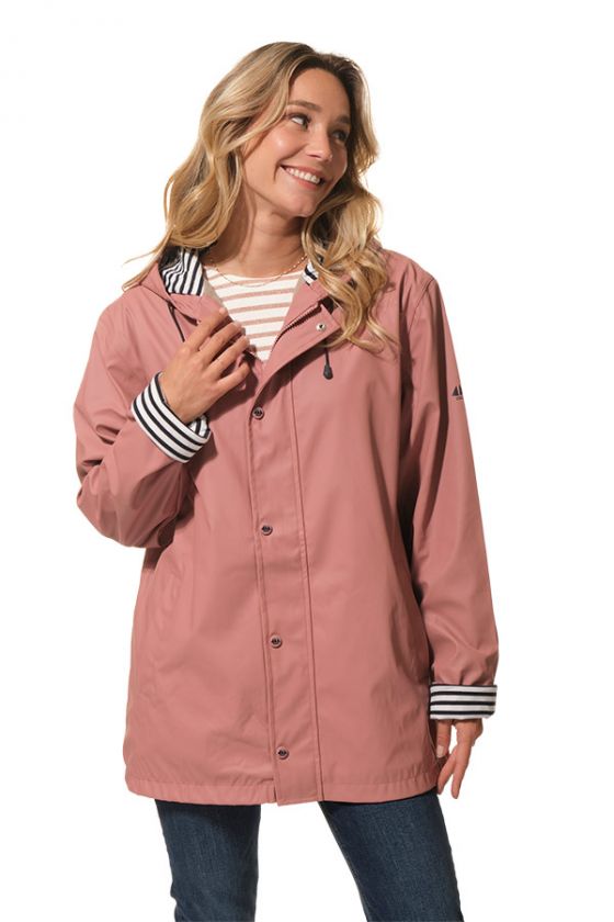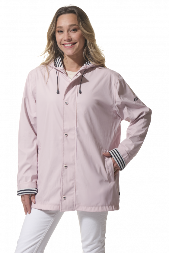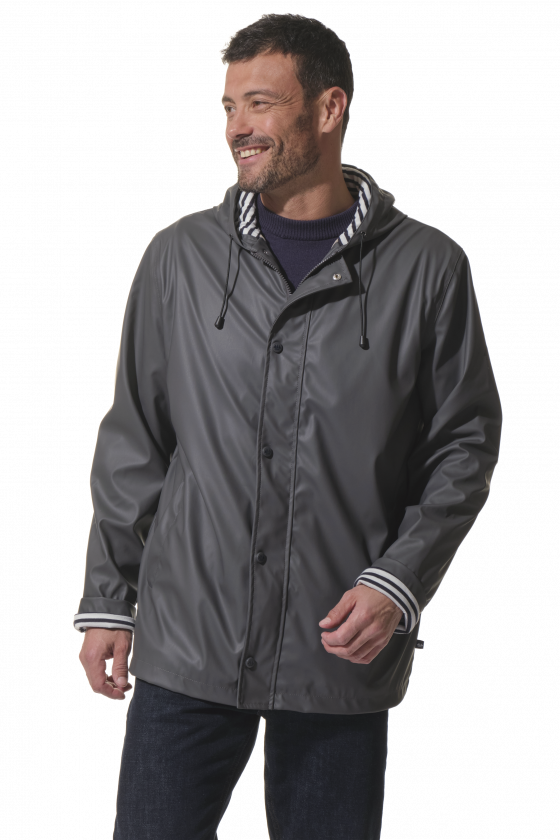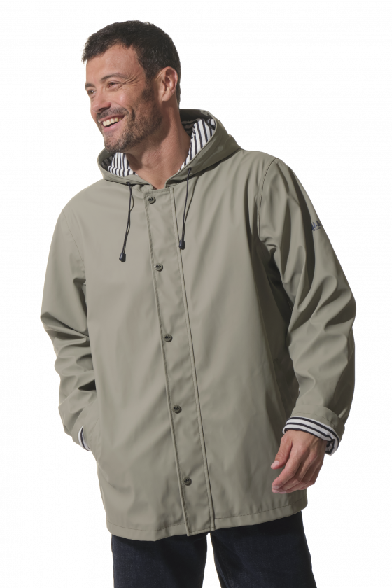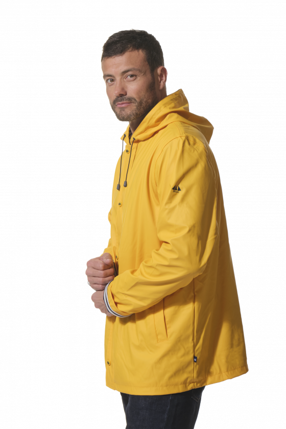 Ciré imperméable et coupe-vent en 100% polyuréthane, doublé polaire pour la chaleur et doté d’une capuche doublée coton rayé avec cordons. Un classique mixte, protecteur et confortable pour toutes vos sorties.