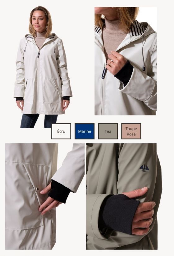 DANIA Ciré Femme 3/4 zippé à capuche, coutures étanches et manchons, doublé polaire.