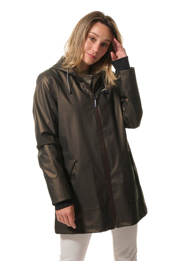 DANIA Métallisé Ciré Femme 3/4 zippé à capuche, coutures étanches et manchons, doublé polaire.