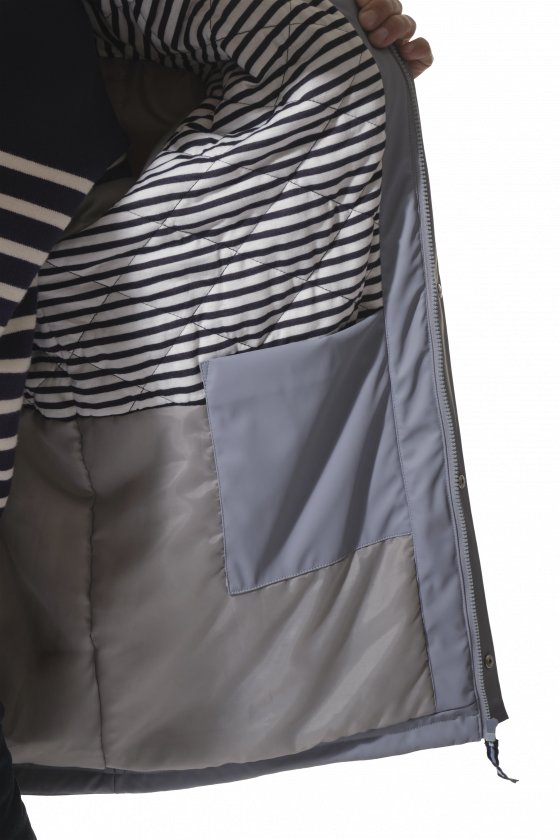 - La doublure matelassée (jersey rayé & nylon) qui apporte chaleur sans alourdir.