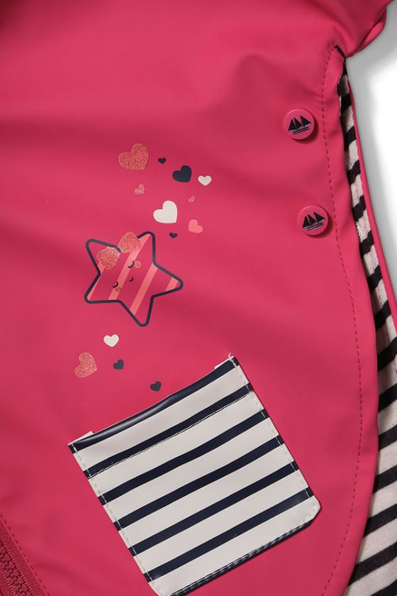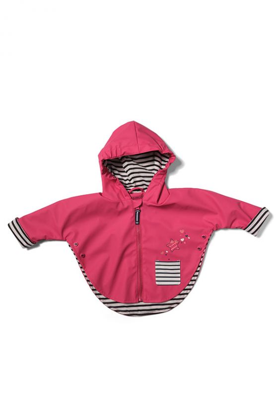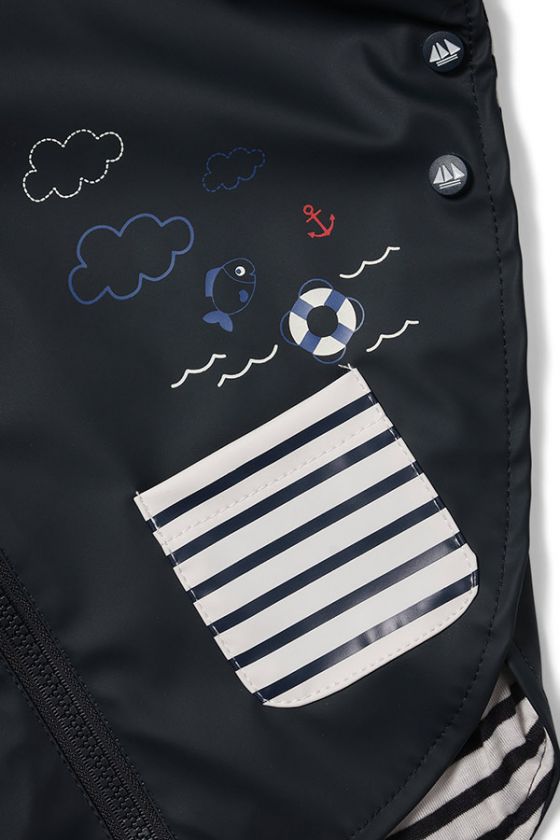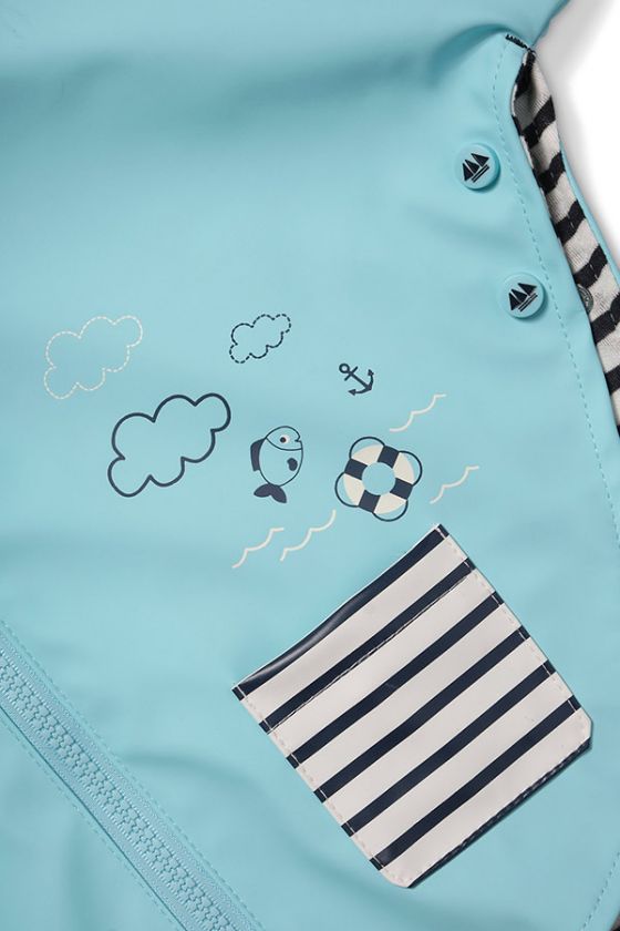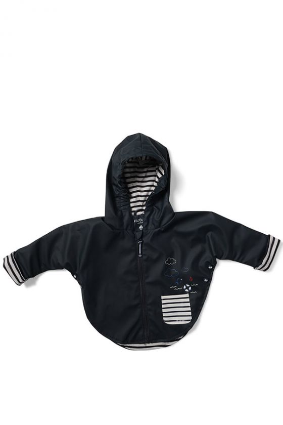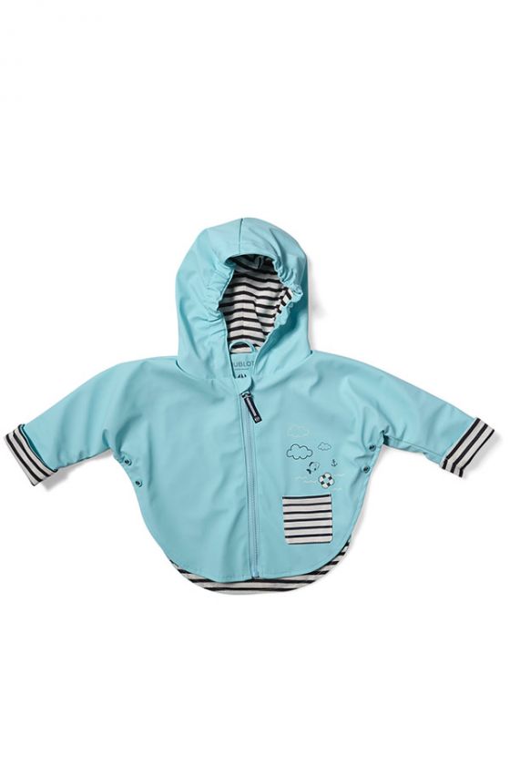 La cape AVERSE HUBLOT est parfaite pour protéger bébé de la pluie avec un look marin craquant. Cette cape zippée à capuche est conçue en polyuréthane (imperméable), avec une doublure en jersey coton rayé style marinière. Très pratique : des boutons-pression sur les côtés facilitent l’habillage et le déshabillage, notamment quand bébé est installé dans un cosy ou une poussette.