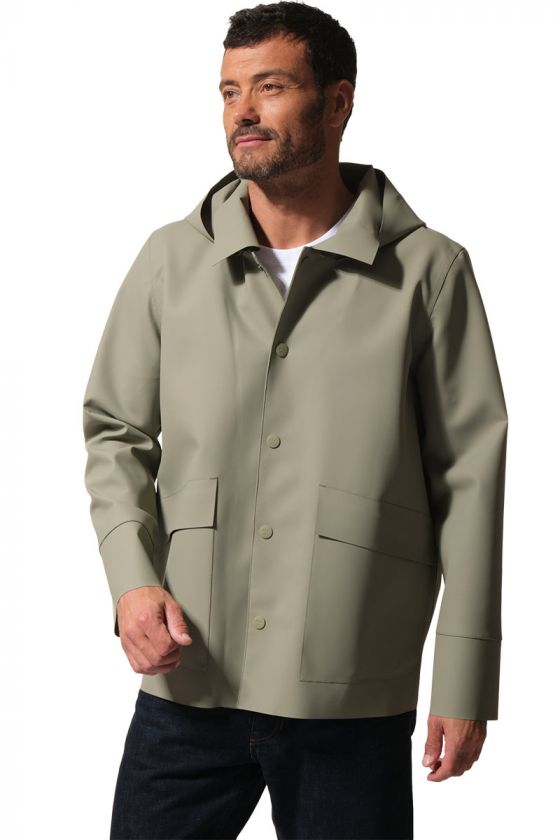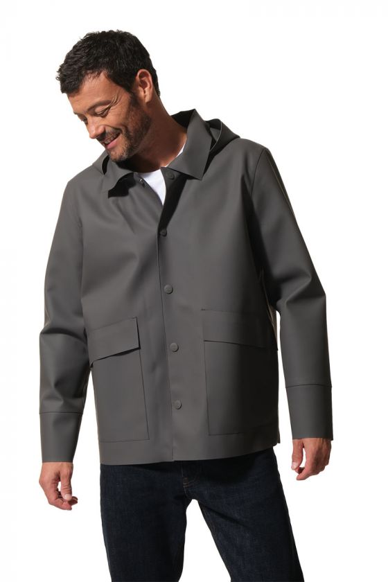Réf.: HHD62BOSTONCiré homme court BOSTON Hublot en 100% polyuréthane double face. Capuche amovible, bavolet dos, grande poche intérieure. Pièce phare été 2026. Prix 129€.