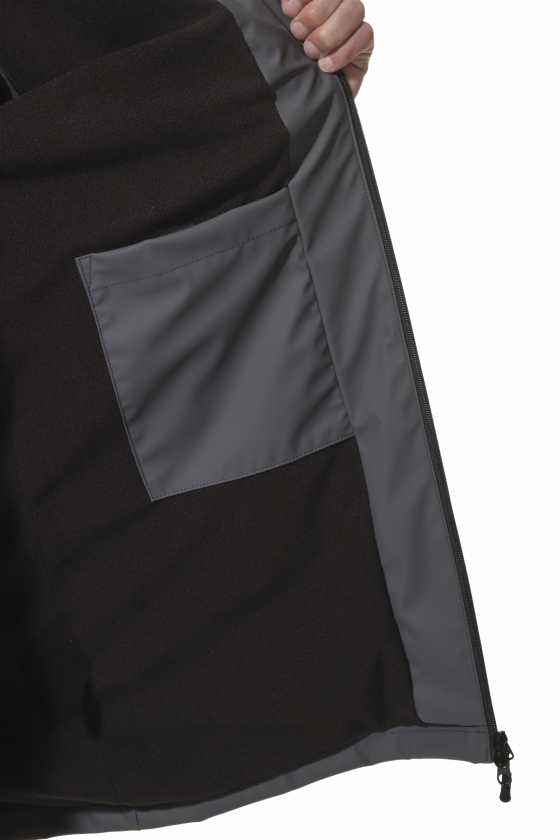 Capuche intégrée, col montant zippé, doublure polaire, liens de serrage + stoppeurs