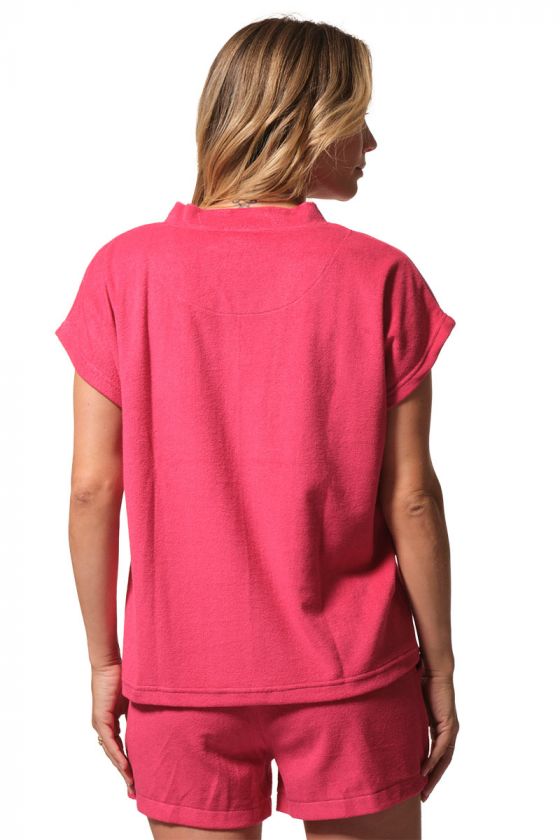 Confectionné en 80% coton et 20% polyester, ce tee-shirt femme en éponge offre un toucher moelleux et agréable à porter au quotidien. Léger et pratique, il s’associe facilement avec le short D42SARABY pour composer un ensemble estival confortable et harmonieux. Disponible en plusieurs coloris, MALWINA est une pièce idéale pour les vacances, les promenades en bord de mer ou les moments de détente.
