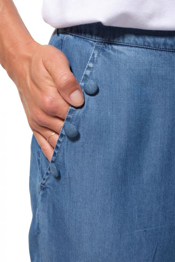 Avec son joli coloris denim clair, MARISOL s’impose comme une pièce facile à associer, parfaite pour composer une silhouette casual chic. On aime ses boutons recouverts de tissu qui apportent une finition soignée, ainsi que ses poches côtés et sa poche arrière, pratiques et discrètes.