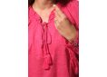 La blouse PHILIPA séduit par son style délicat et féminin. Réalisée en 100% coton, elle se distingue par son tissage jacquard motif cœur, son encolure fantaisie avec liens et pompons et ses manches légèrement bouffantes. Une pièce élégante et légère, dans le même univers que la robe D62AMEL.