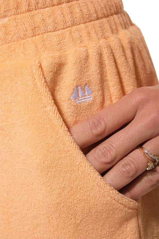 On craque pour le petit bateau brodé en fil doré au niveau de la poche, un joli détail signature qui rappelle l’univers marin de la marque. Associez le avec le tee-shirt MALWINA dans la même matiere éponge pour un confort exceptionnel