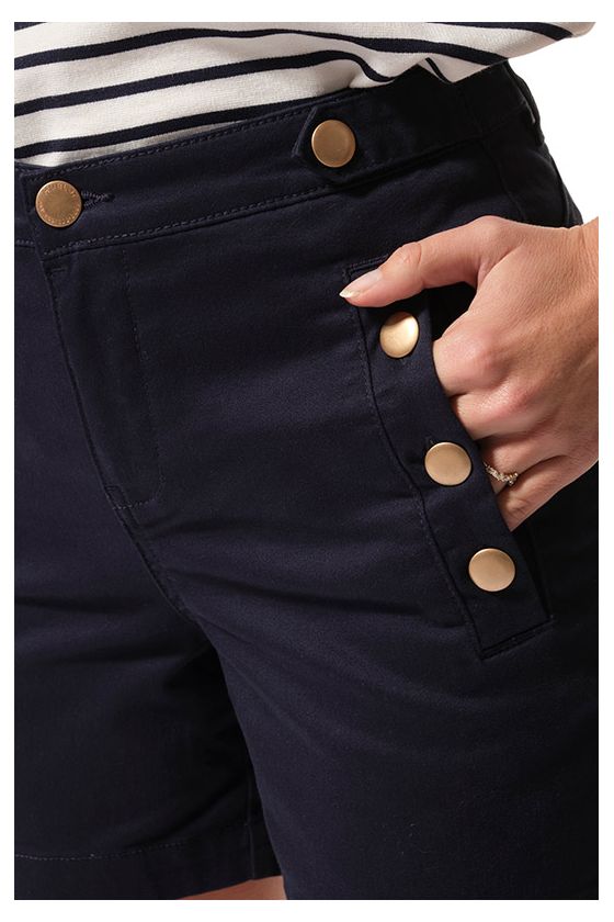 Réf.: D42TREDDIALe short TREDDIA HUBLOT revisite avec élégance l’esprit du pantalon à pont dans une version estivale, féminine et facile à porter. Sa ligne structurée, ses boutons dorés et sa longueur mi-cuisse en font une pièce chic au charme marin affirmé. Confectionné dans une toile de coton légèrement stretch, il offre un bon maintien tout en restant agréable au quotidien.