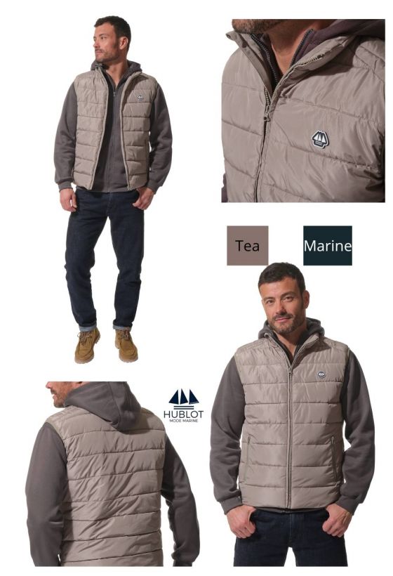 Réf.: G42ULYSSEDoudoune sans manches matelassée & déperlante. Fermeture zippée, 2 poches zippées, badge Hublot — coloris Marine ou Tea.