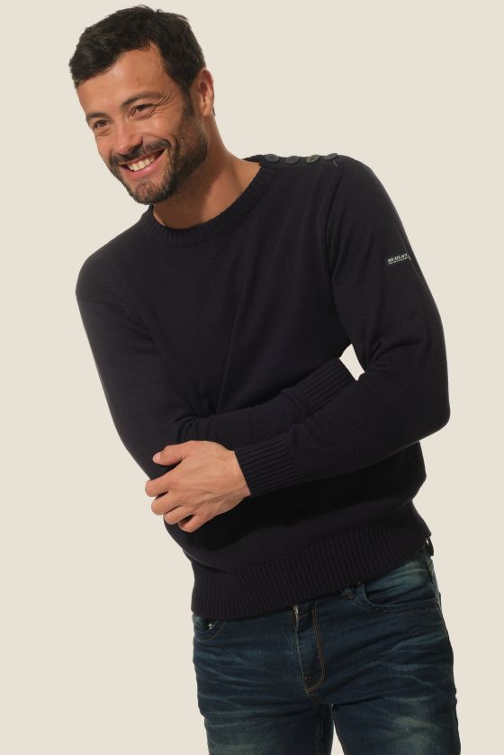 YANIS Pull Marin homme Col rond et boutons épaules |HUBLOT