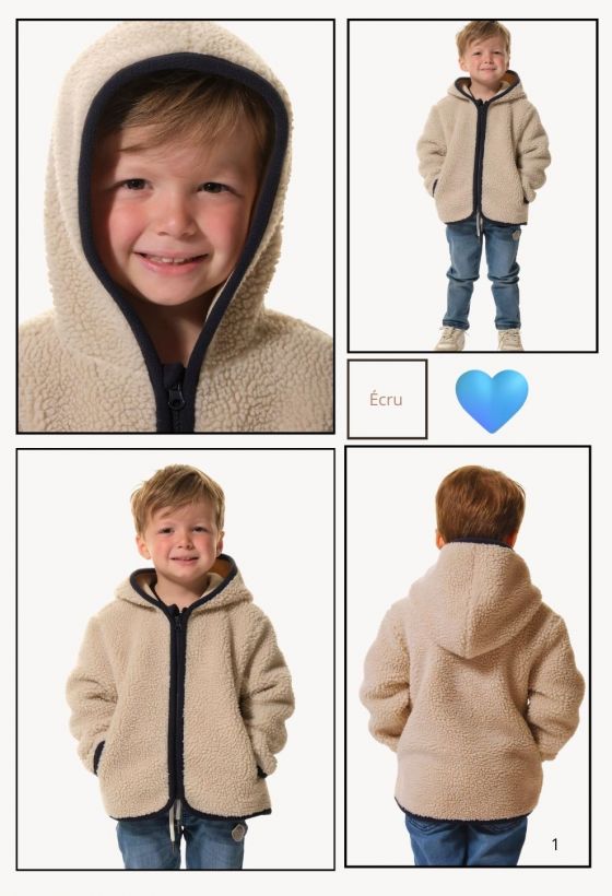 Réf.: G42ZILPAMZILPA : veste enfant sherpa zippée à capuche, Écru. Douce, légère & chaude. 2A–10A – 59 €. Sherpa contre-collé polaire : chaleur optimale, confort au quotidien. Capuche fixe. Mixte, coupe pratique et entretien facile. Parfaite pour les saisons fraîches.